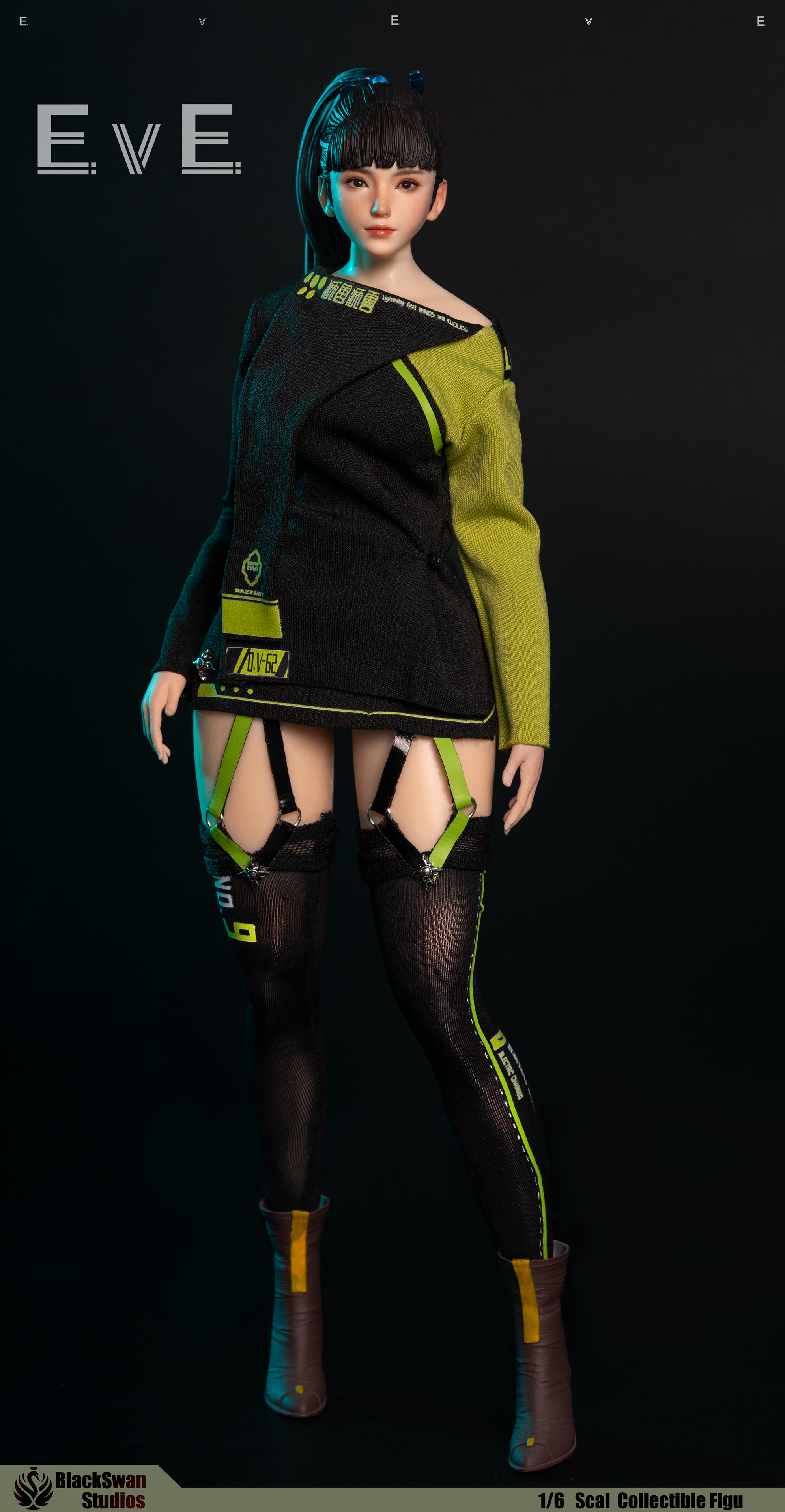 B款=假日兔套裝×1+可動眼女頭雕×1+全新定制豐臀鋼骨包膠女素體×1+金屬髮束×1+高跟靴×1對+替換手型×4對