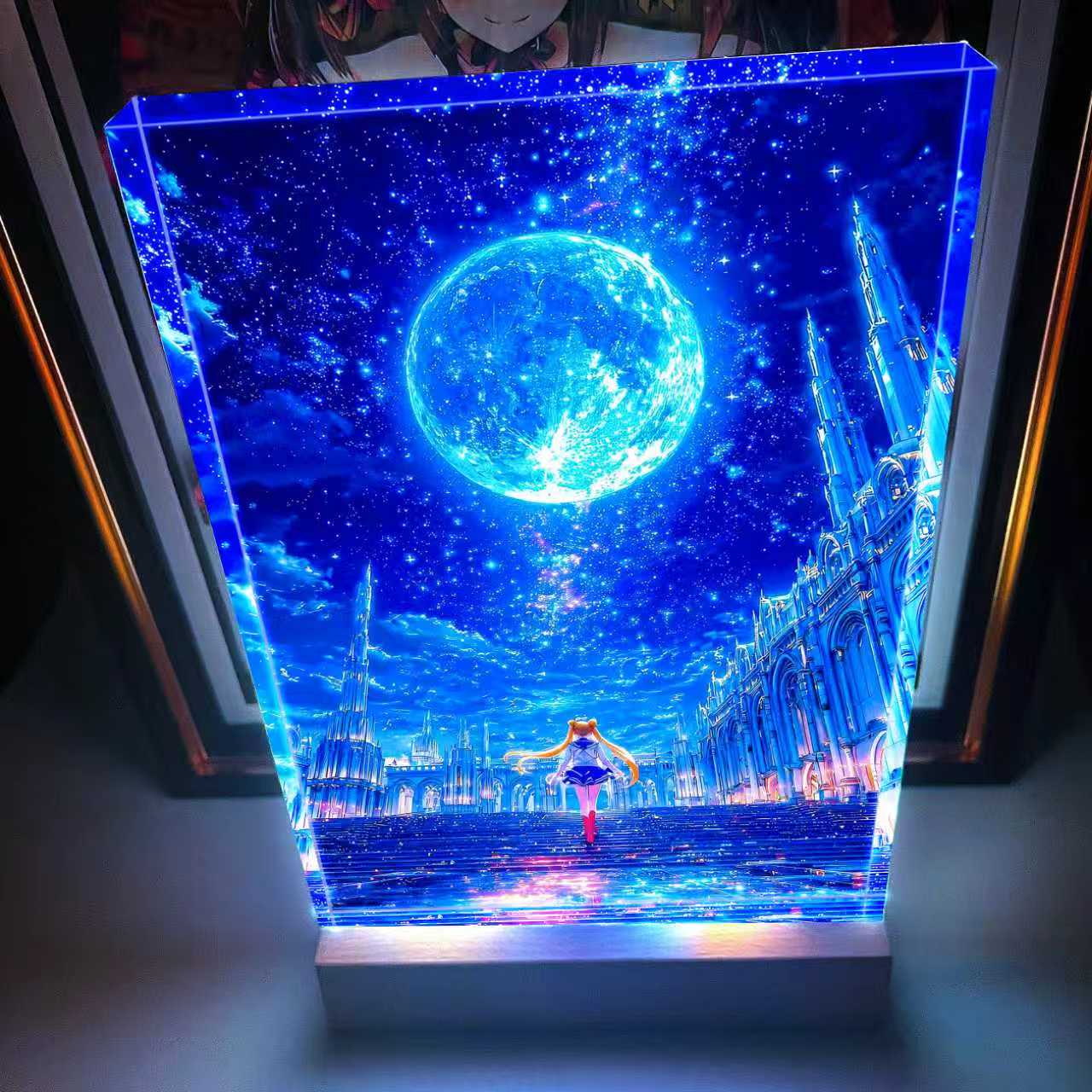 材質:2 cm 厚亞克力雙面印花卡磚+實木發光底座+無閃頻燈源